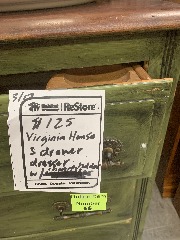 42 length by 35 height by 19 3/8. Virginia house green 3 drawer dresser with change holder